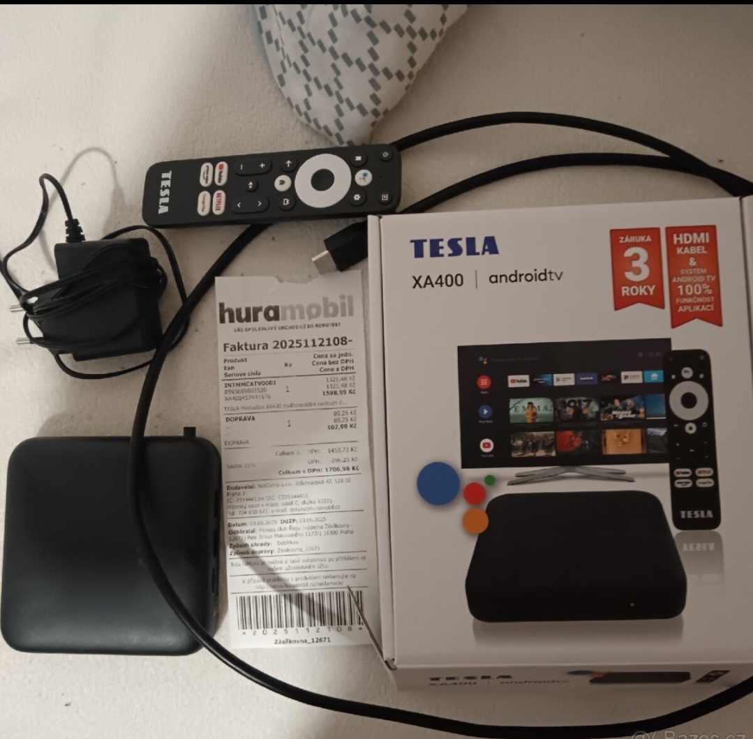 Android tesla tv box xa400 v zaruce do 30.6.2028 s dokladem. Por. cena 1600 Po aktualizaci to ma android 14. Osobni predani pouze Prah Repy blizko motola. https://multimedialni-centra.heureka.cz/tesla-mediabox-xa400/?ppcbee-adtext-variant=RSA-dynamic-price_drop&utm_source=google&utm_medium=cpc&utm_campaign=CZ%3EPRF%3EEL%3EElektronika%3ESERP%3ECAT%3E%28DSA%2BKW%29&utm_id=1727751296&gad_source=1&gad_campaignid=1727751296&gclid=Cj0KCQjw37nNBhDkARIsAEBGI8MZXb05I_YGr_Iw-_JLMa_exr61ZMBLQLefEaMkhmiyVSOuIbBUu7YaAiuREALw_wcB#specifikace/?sort-filter=lowest_price