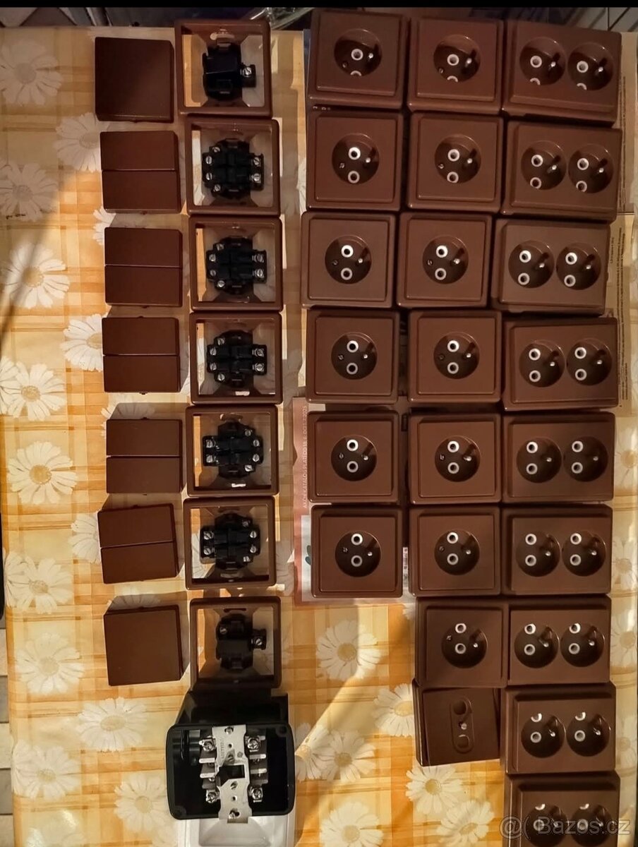 2 zásuvka 70Kč, 1 zásuvka 50 Kč, vypínače 1ks za 60 Kč, hlavní vypínač 250 Kč 4 vypínače 2 klapkové už nejsou