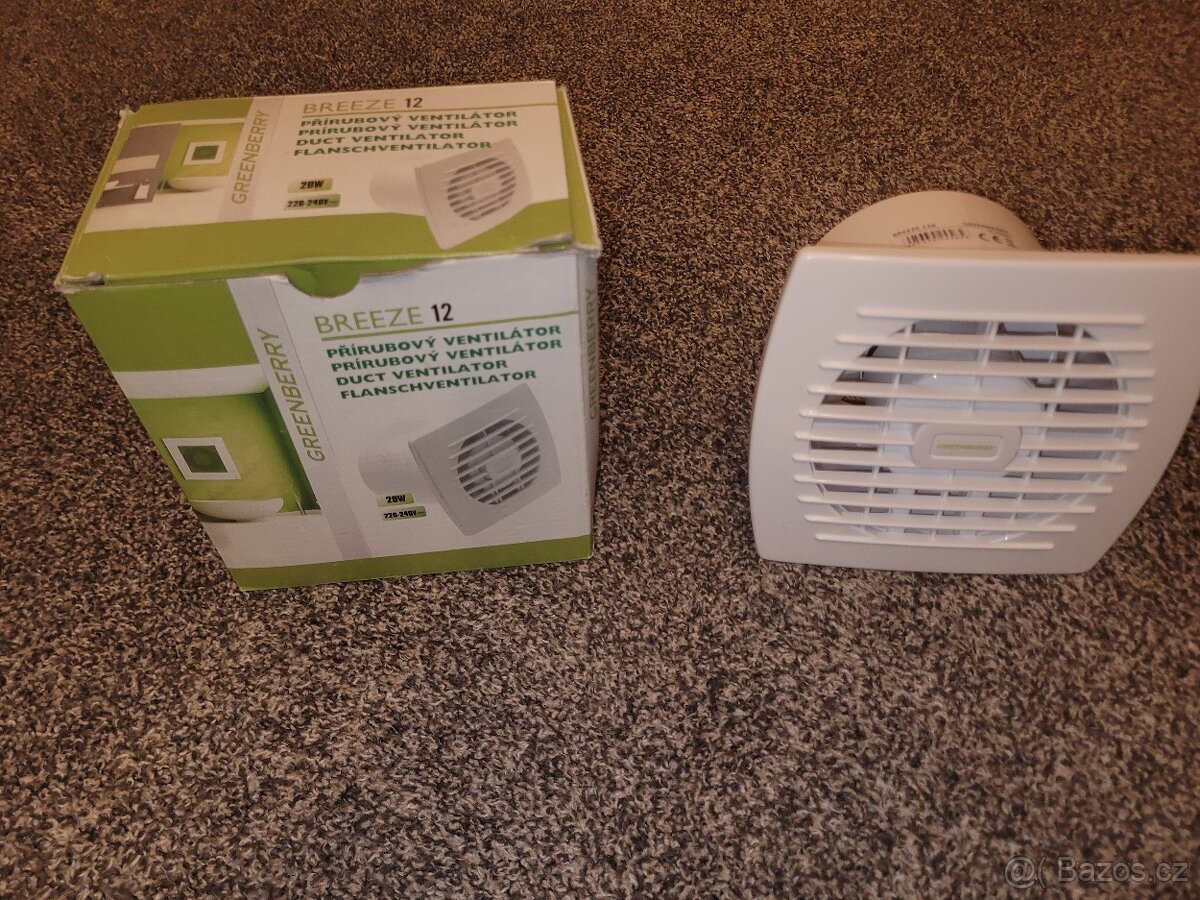 Prodám koupelnový prirubovy ventilátor Greenberry nový nepoužívaný. Cena 500